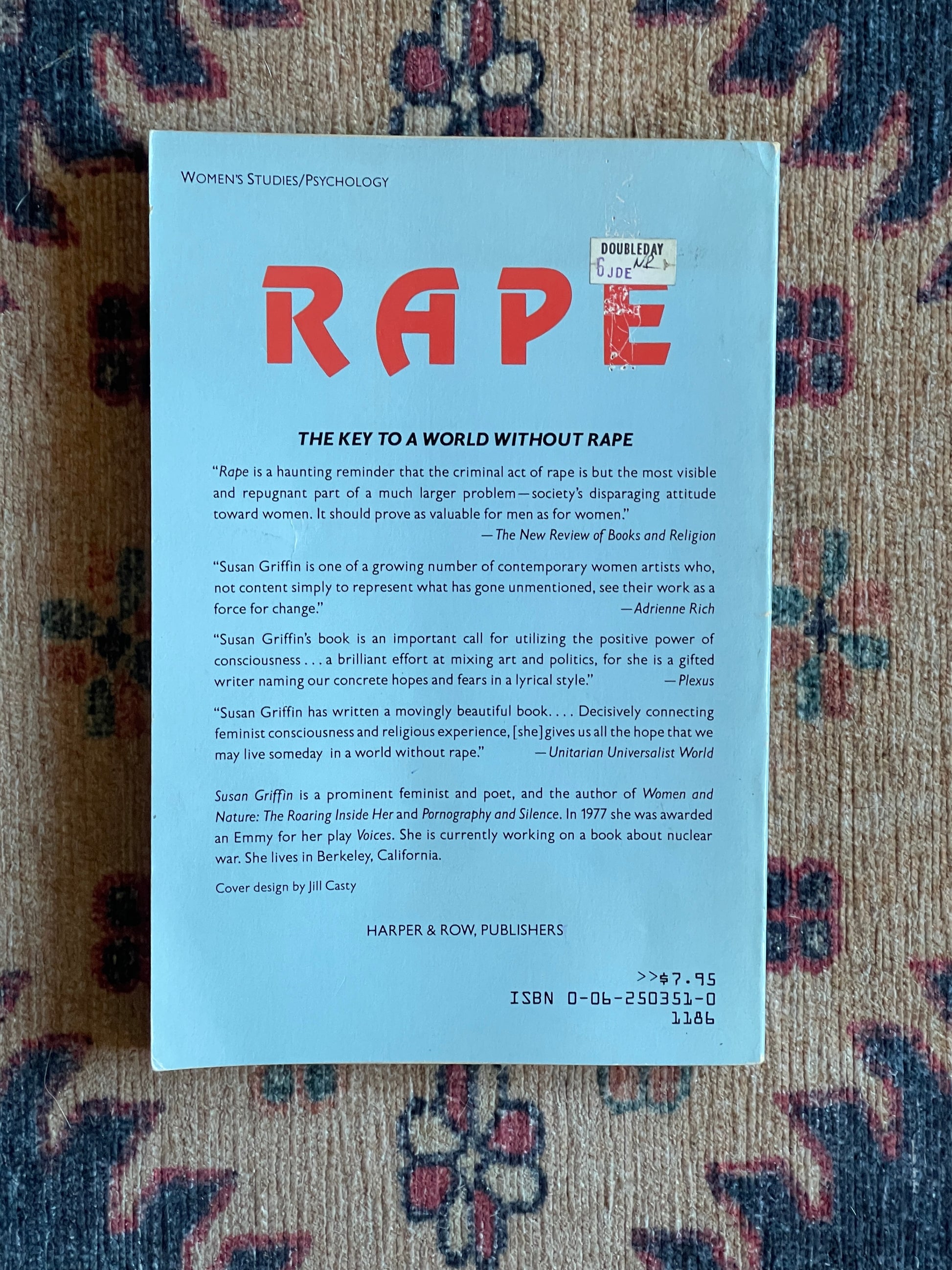 Rape: The Politics of Consciousness by Susan Griffin. Paperback, 1986.